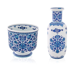 Tray Cascais Izmir. A rare silica ceramic tile painted in Iznik, from the 16th century, a treasure belonging to the permanent collection of the Calouste Gulbenkian Foundation - was the basis for the creation of this set, honouring the art of tile making in Ottoman Turkey.
